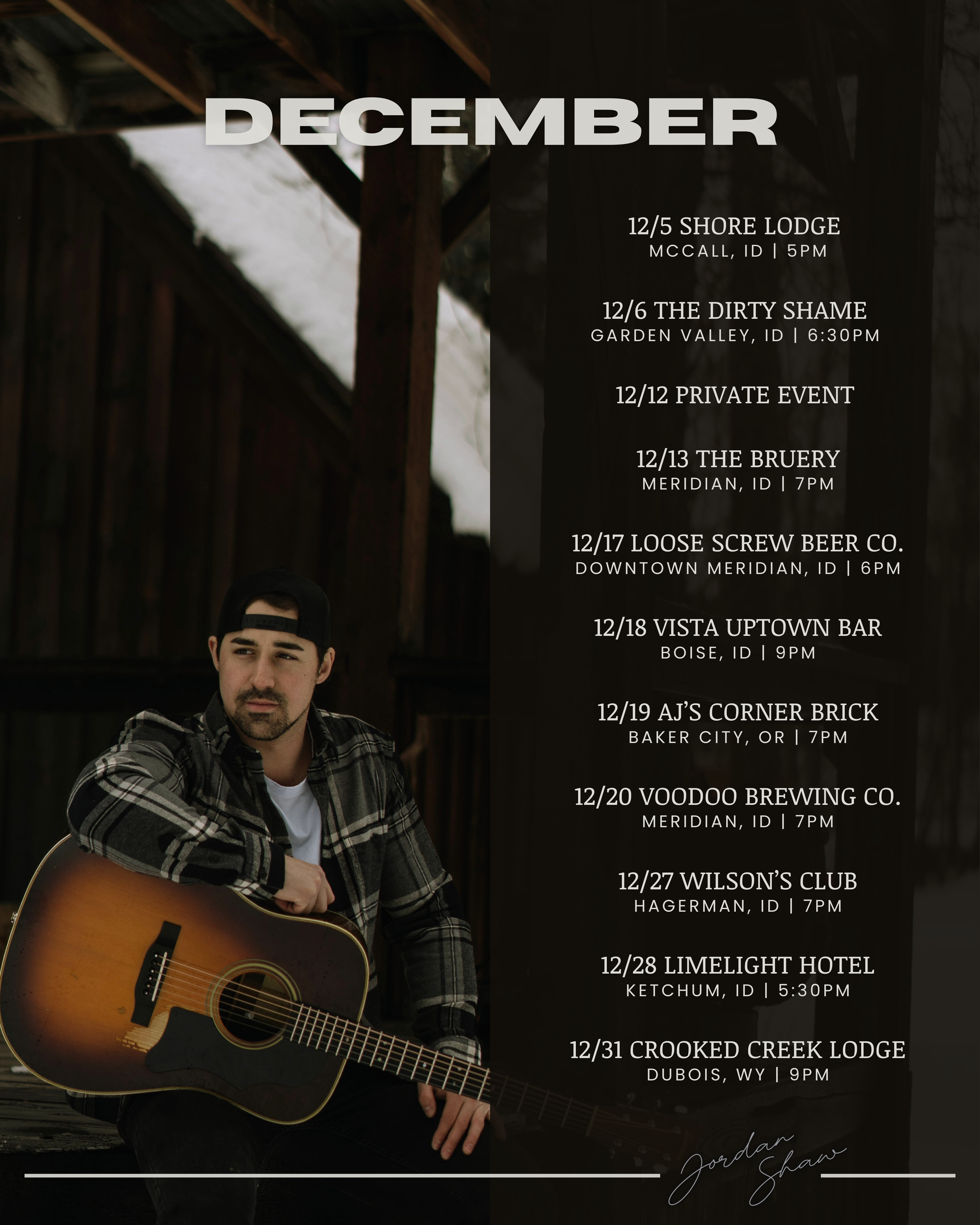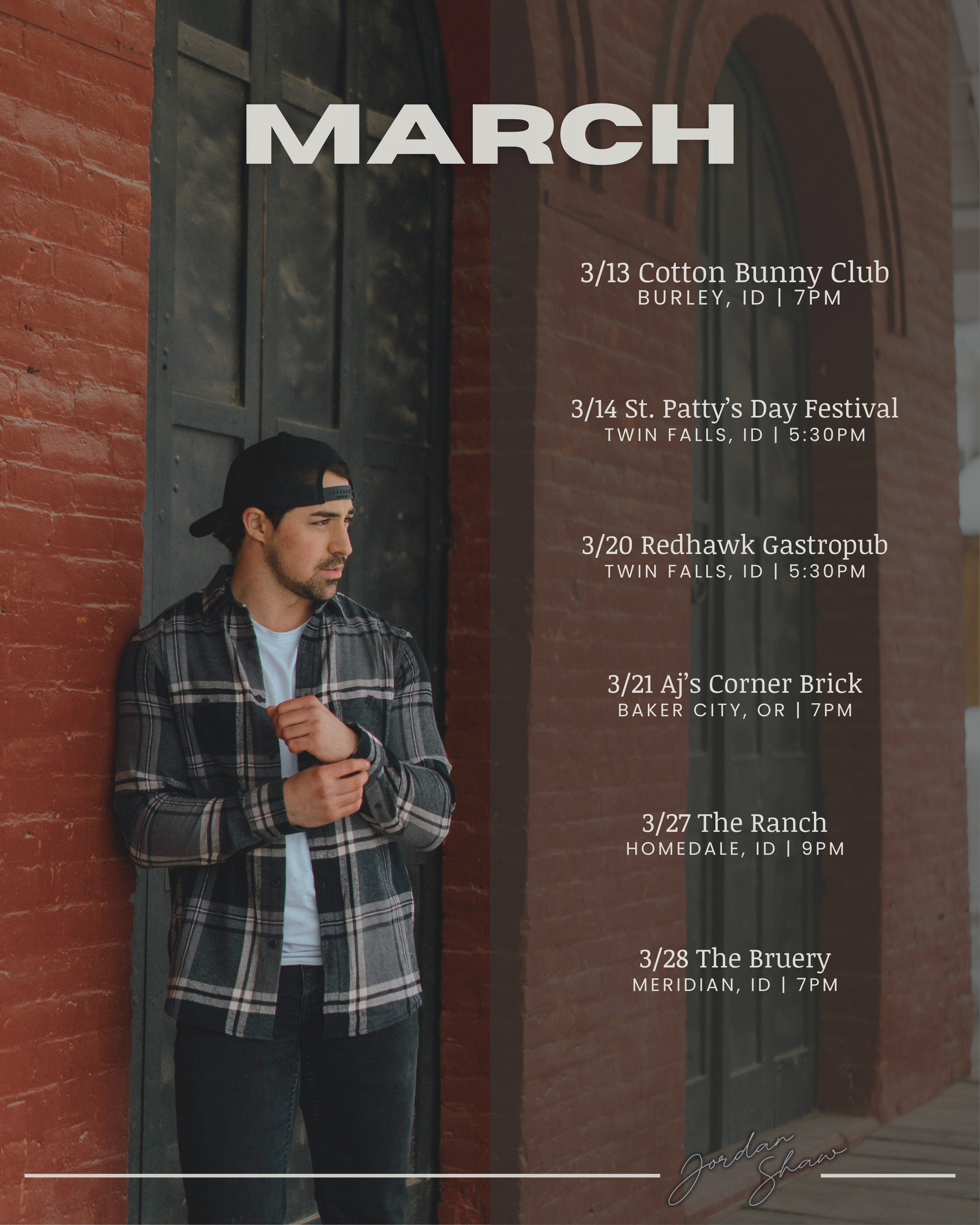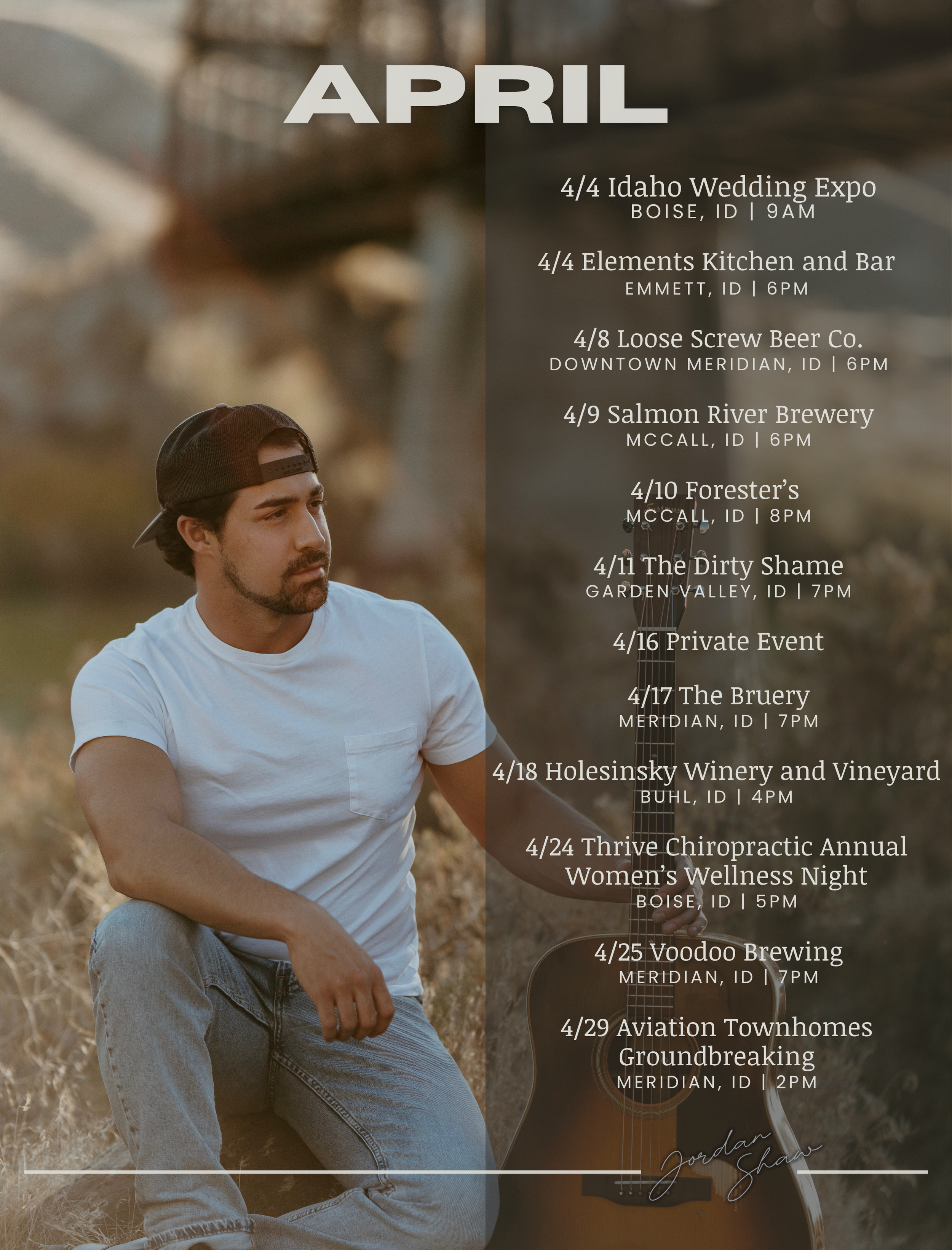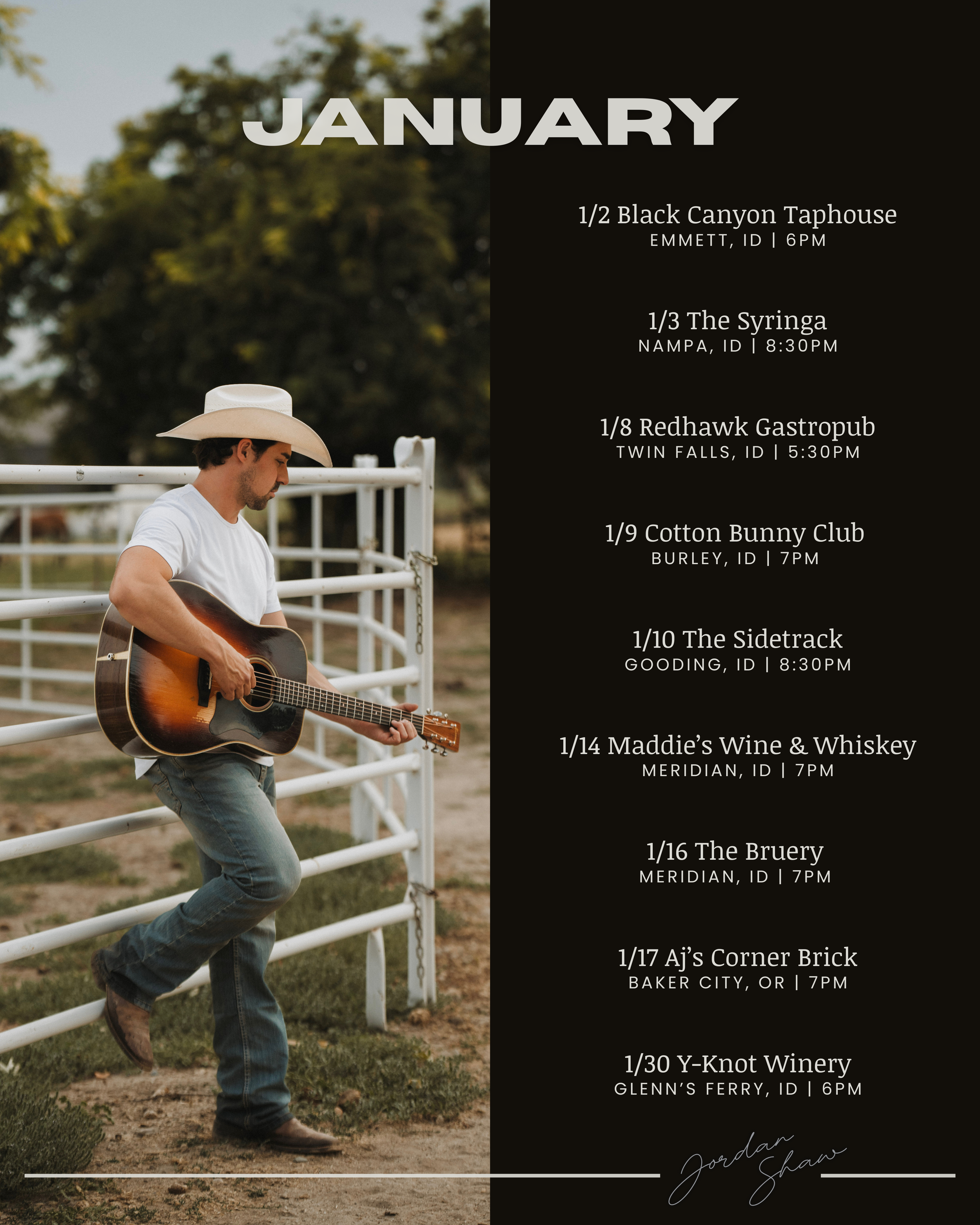 Jordan grew up in North Carolina, but currently hangs his hat in Boise, Idaho where he writes and performs country music that pays respect to 90’s country themes, while infusing contemporary influence. He actively draws inspiration from artists such as Morgan Wallen, Eric Church, Garth Brooks and Johnny Cash.
